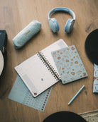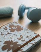 Agenda semanal en azul con flores en marrón oscuro: un mix intenso y floral que convierte tu rutina en puro estilo.