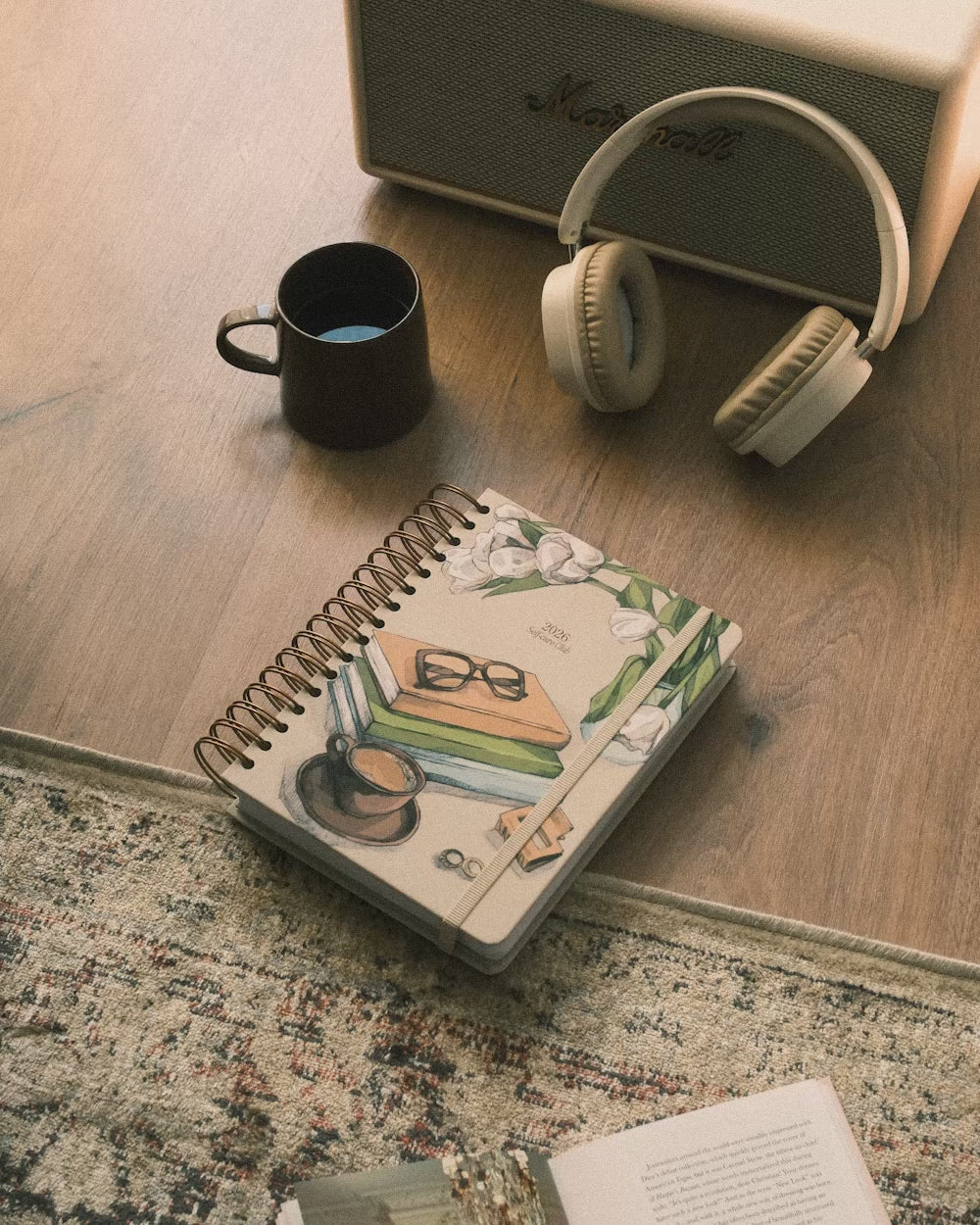 Agenda diaria inspirada en un jardín de flores sobre fondo verde: mantiene tu planning en modo cozy todo el año.
