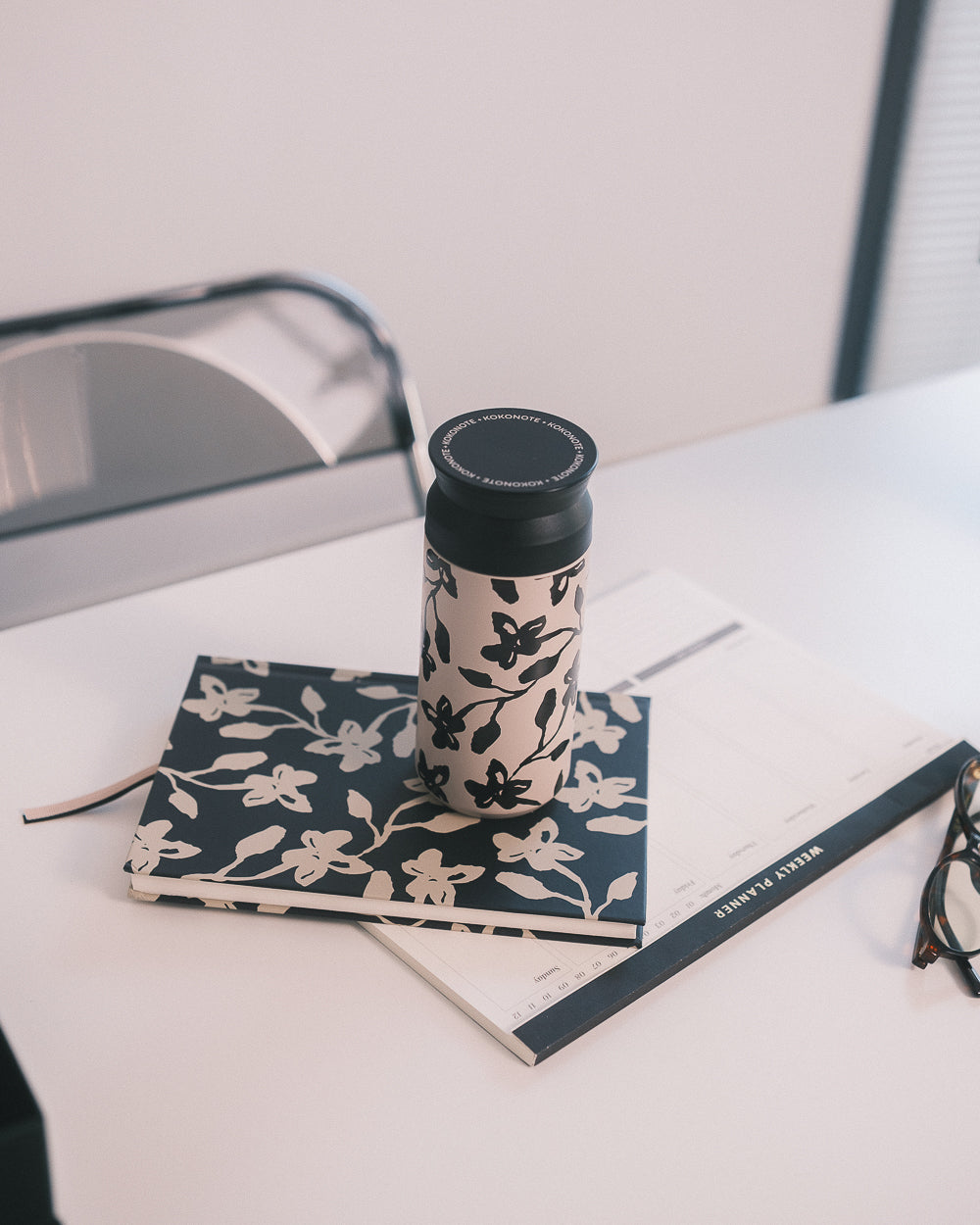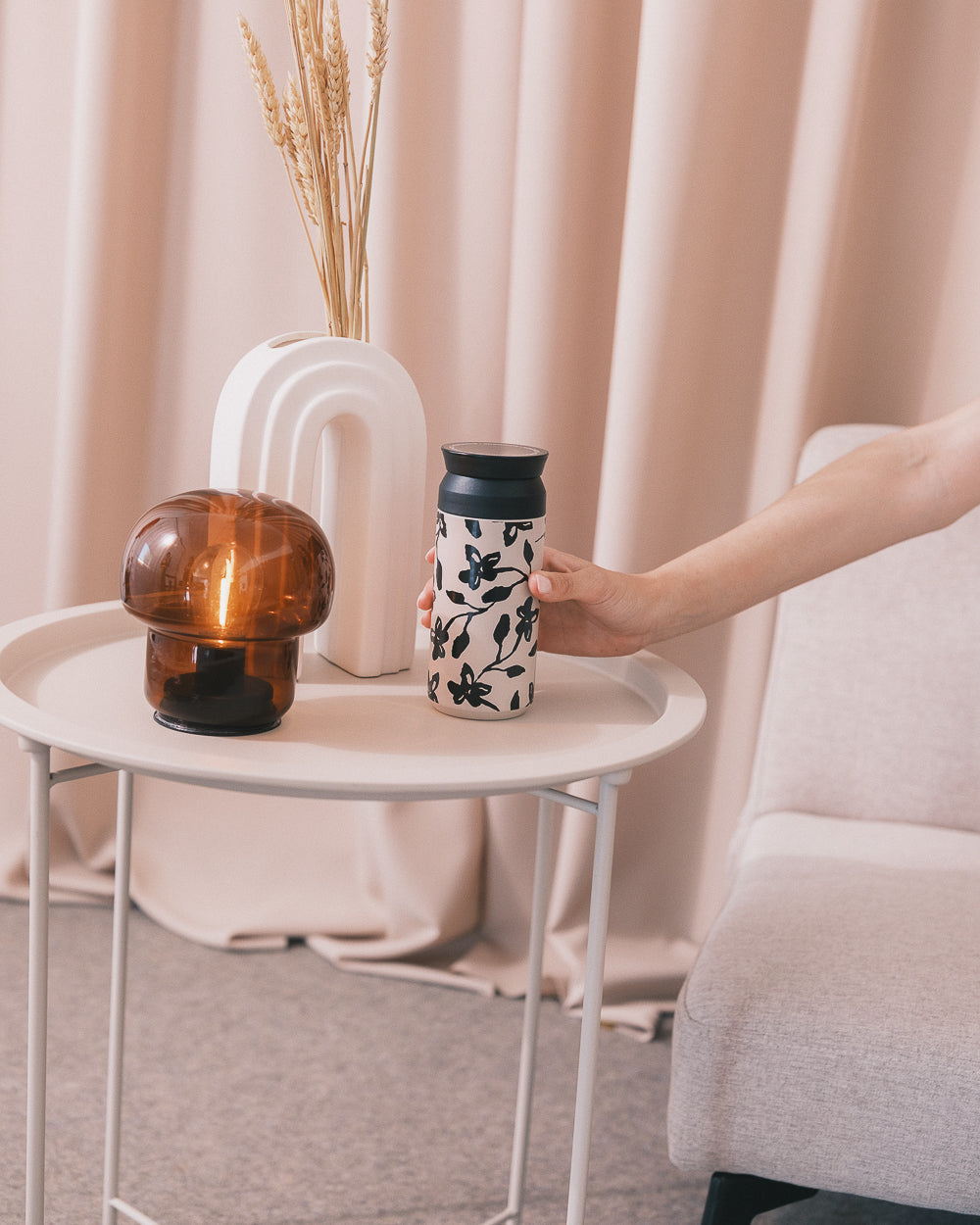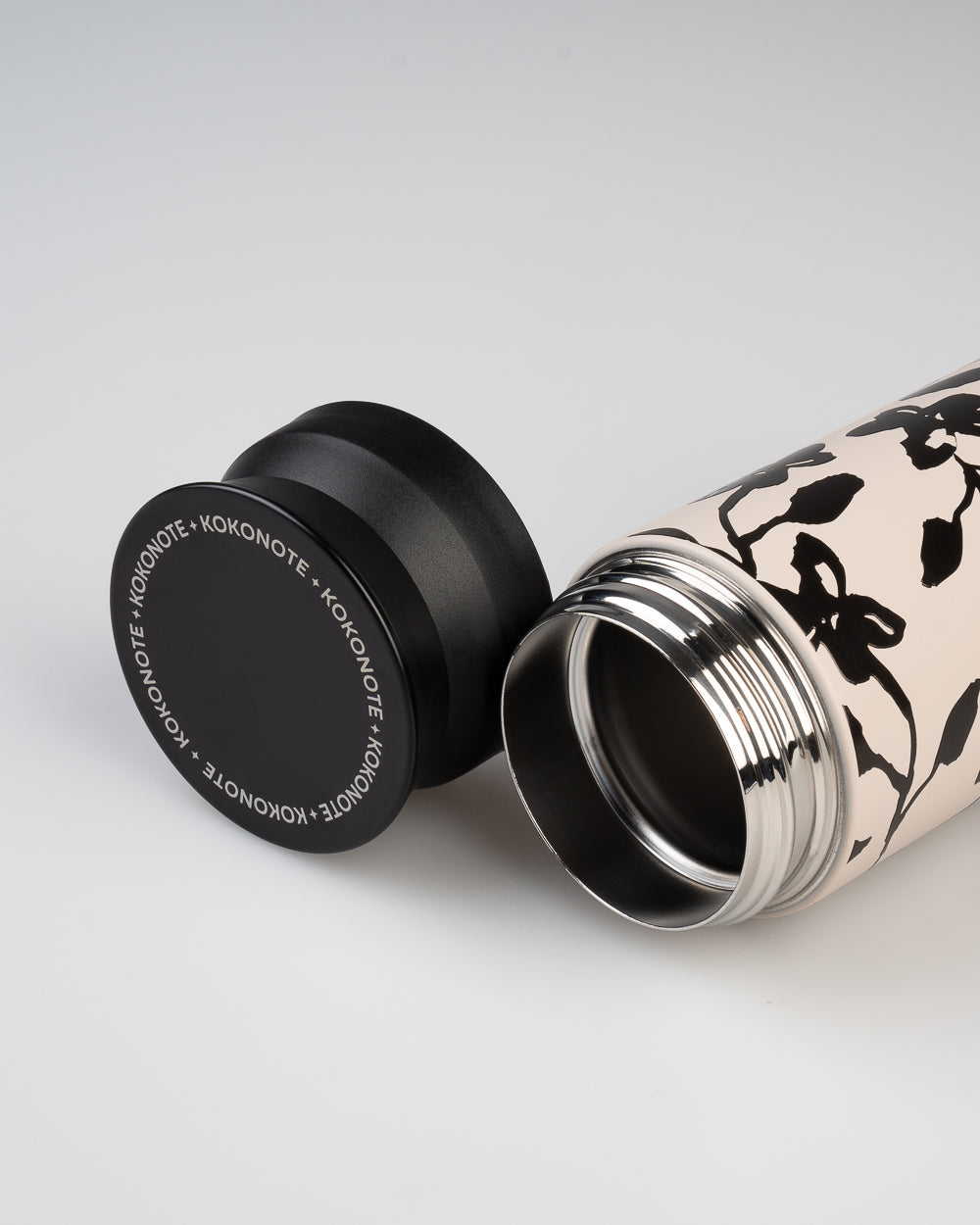 Termo de acero inoxidable con estampado floral en negro y beige, el combo minimal-chic que siempre está ready para tus planes. Mantiene el agua fría hasta 24 horas y el café caliente hasta 12 horas.