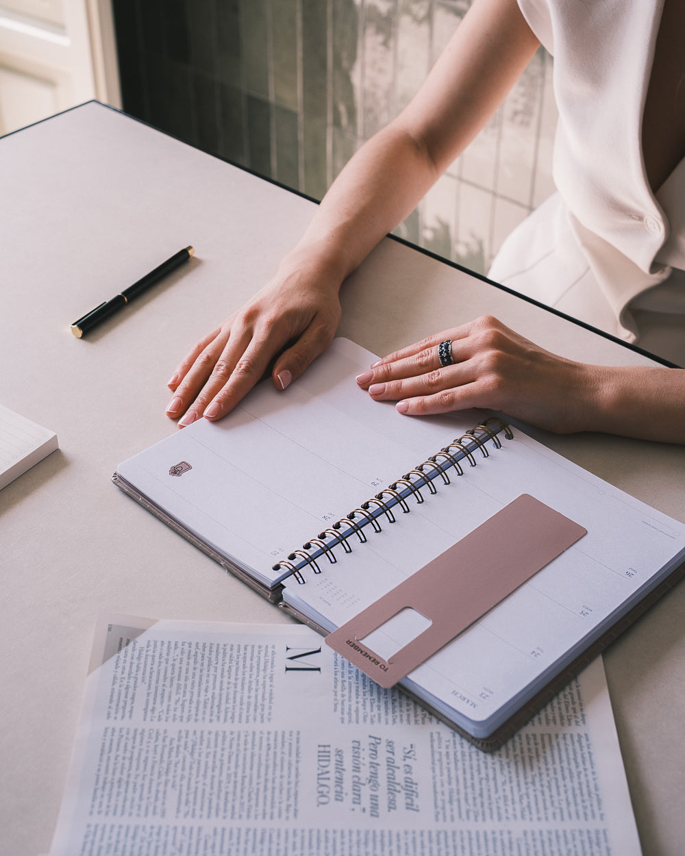 Beige weekly planner with a crocodile texture; a mini dose of glamour to keep your planning chic.