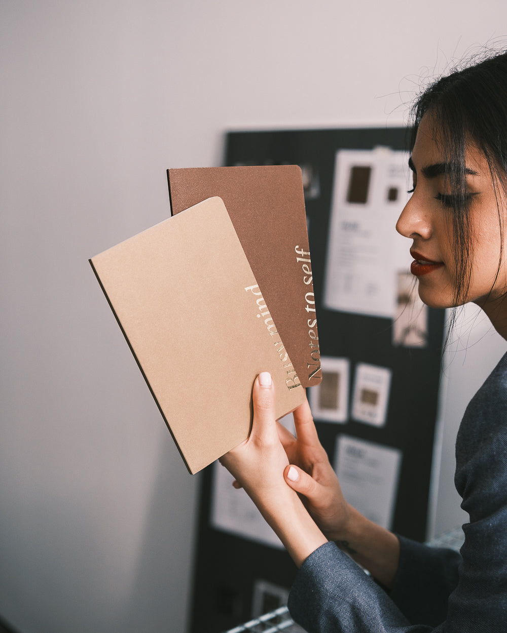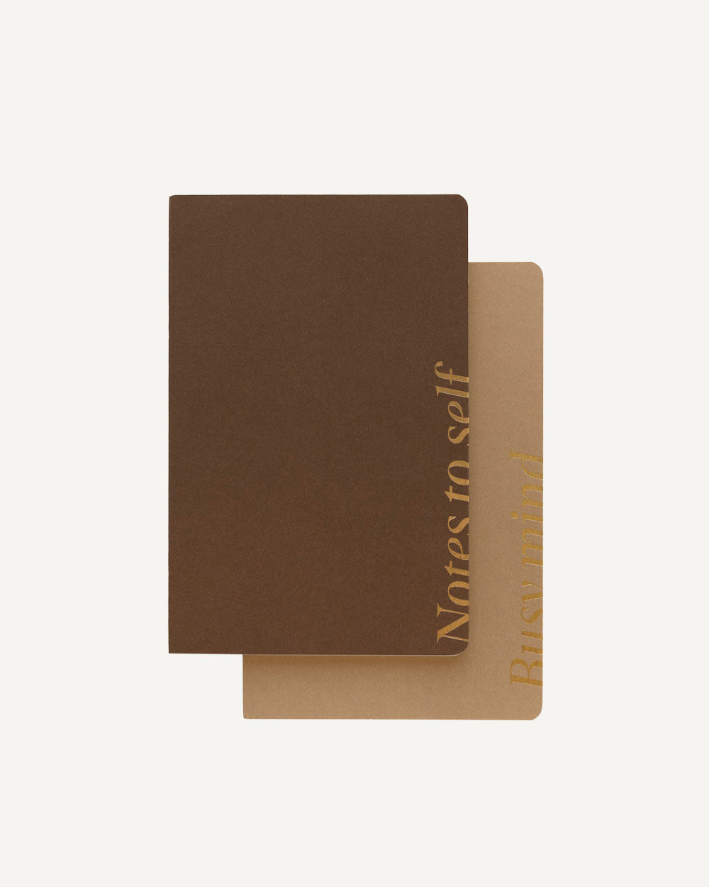 Two notebooks with minimalist design in brown tones from the Basic Studio collection.