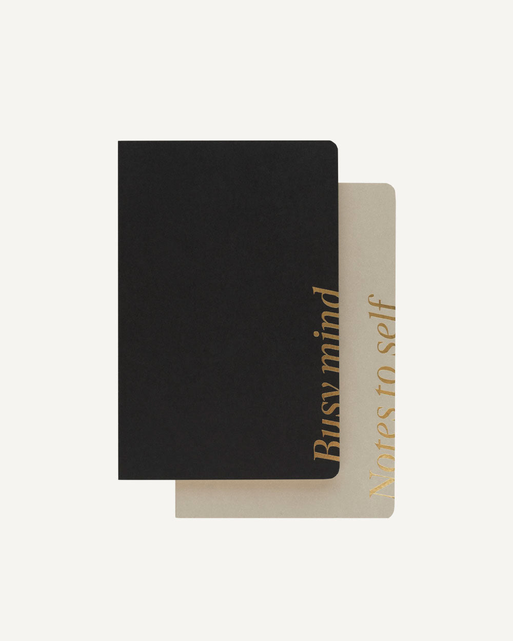 Two notebooks with minimalist design in black and grayish tones from the Basic Studio collection.