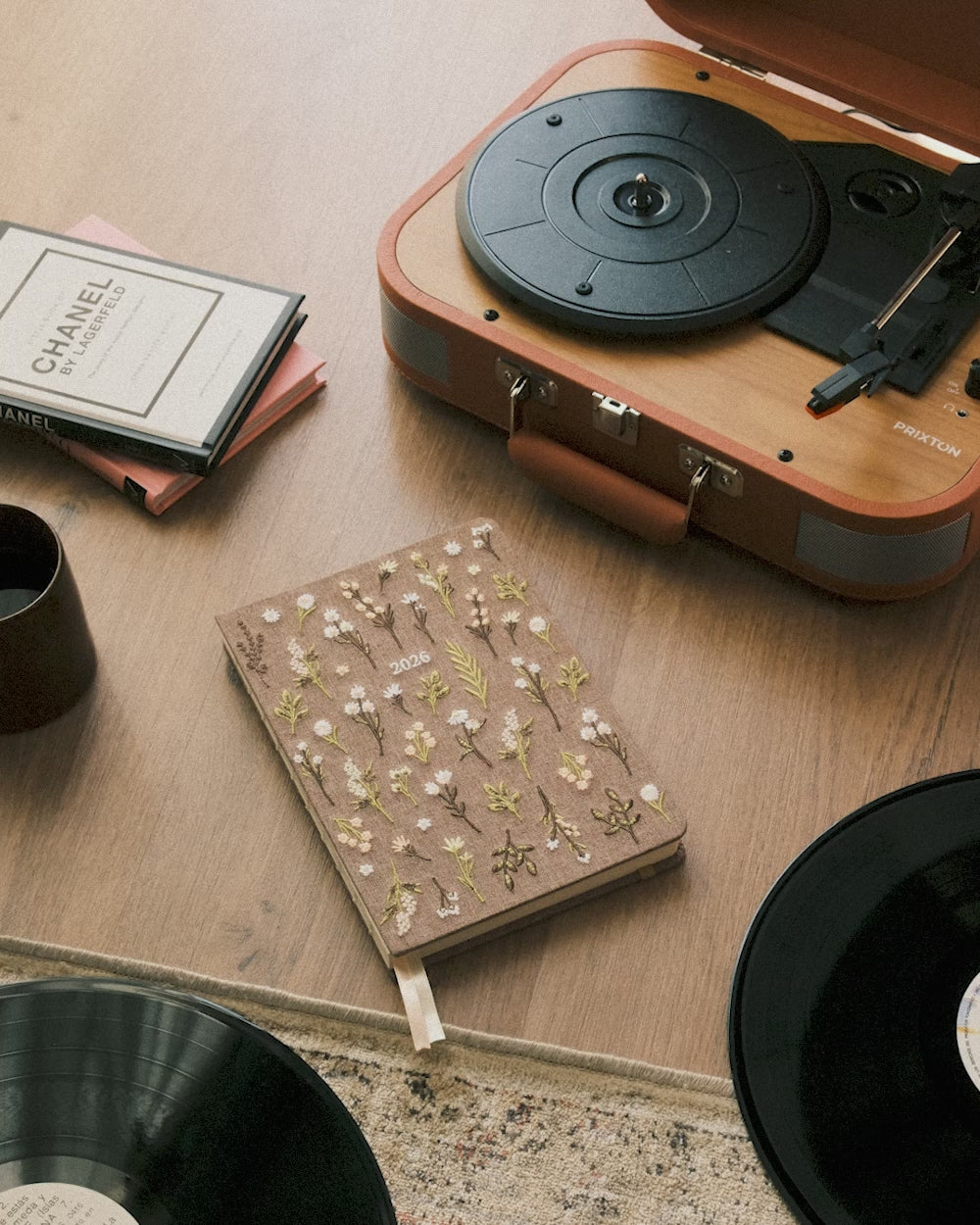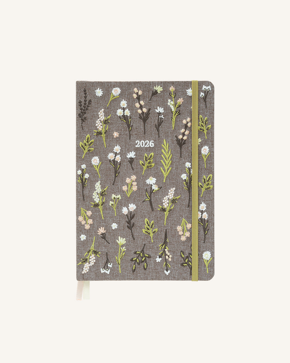 Weekly planner in vertical format with a fabric cover in earthy tones and embroidered flowers that put your planning in cozy mood.