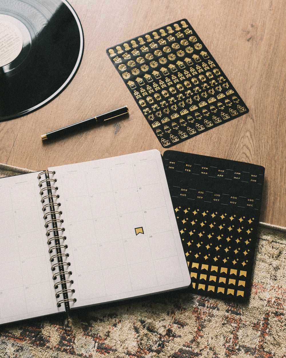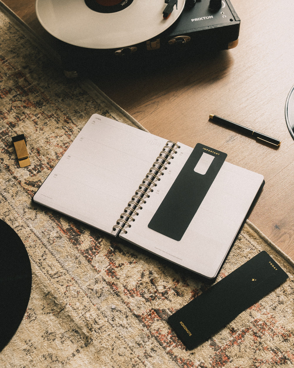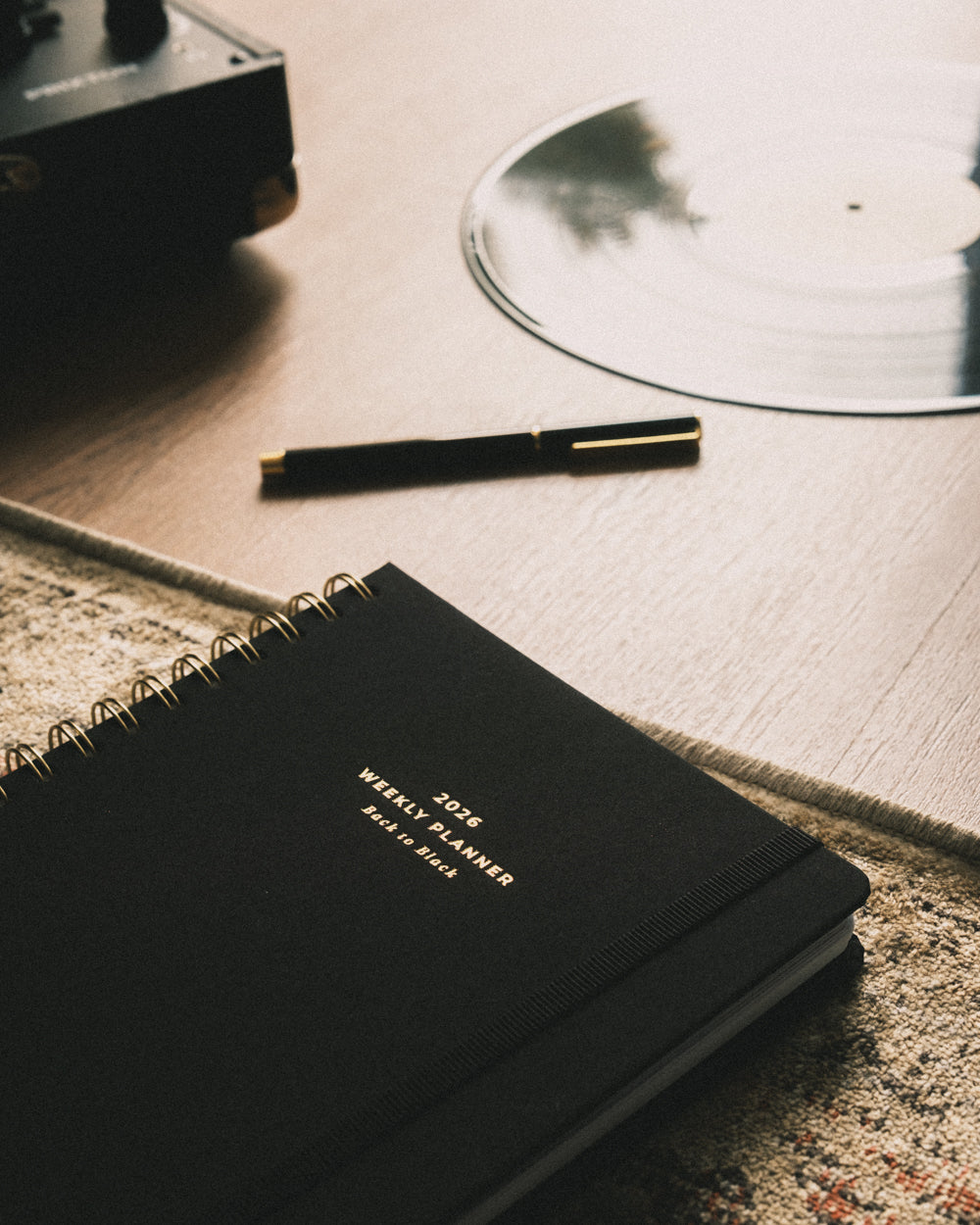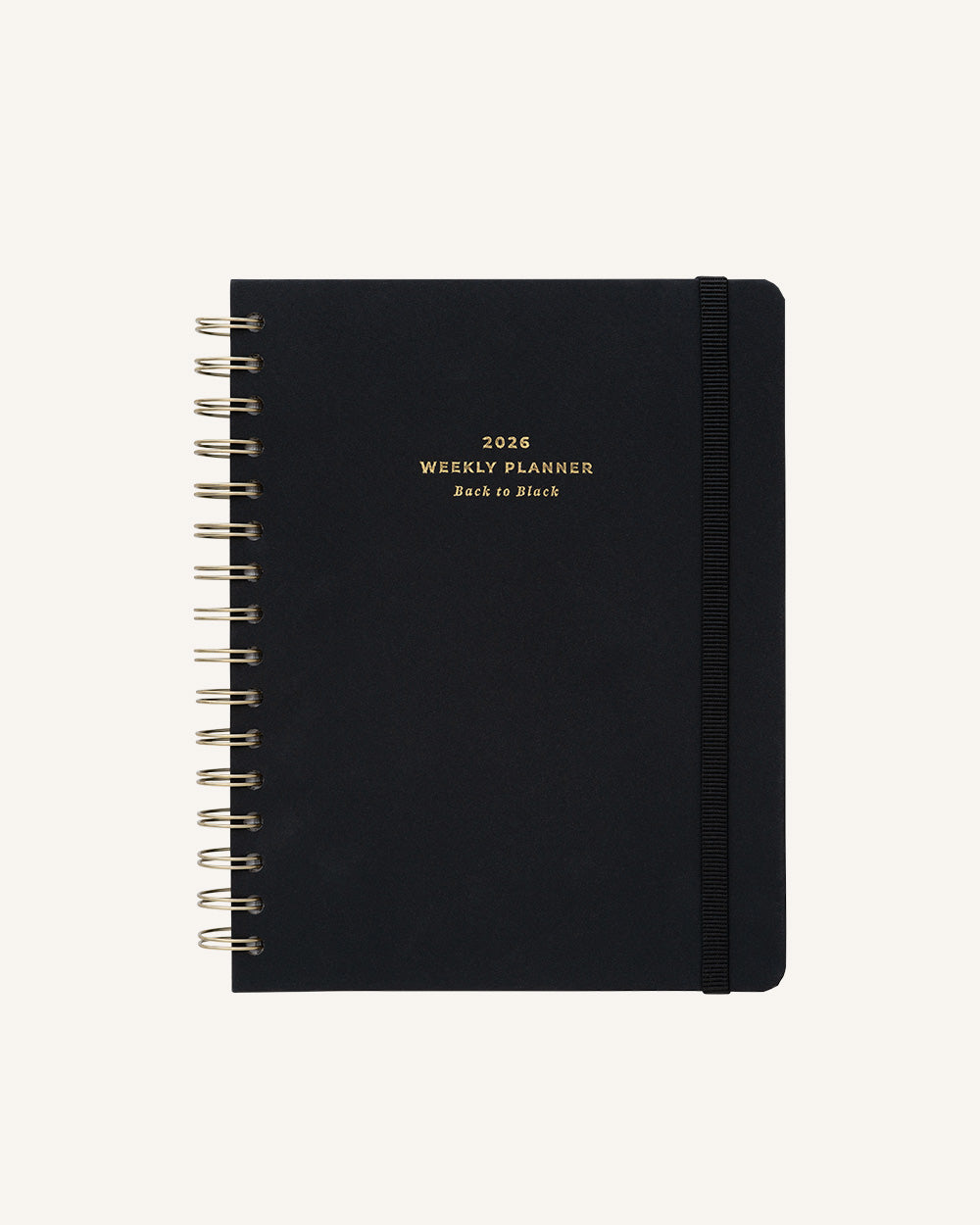 Weekly planner in total black fabric our best seller is back. The minimal must-have returning to own your year, set trends, and show off your routine with attitude.
