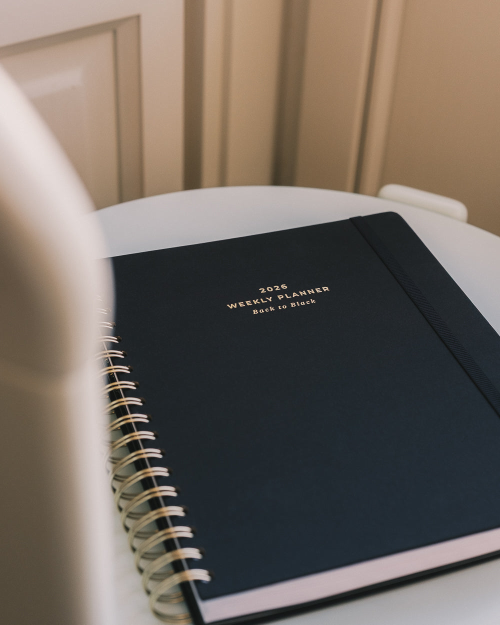 Our best-selling Back to Black planner is back! This total black XXL weekly planner is the ultimate minimalist must-have to set trends and show off your routine.