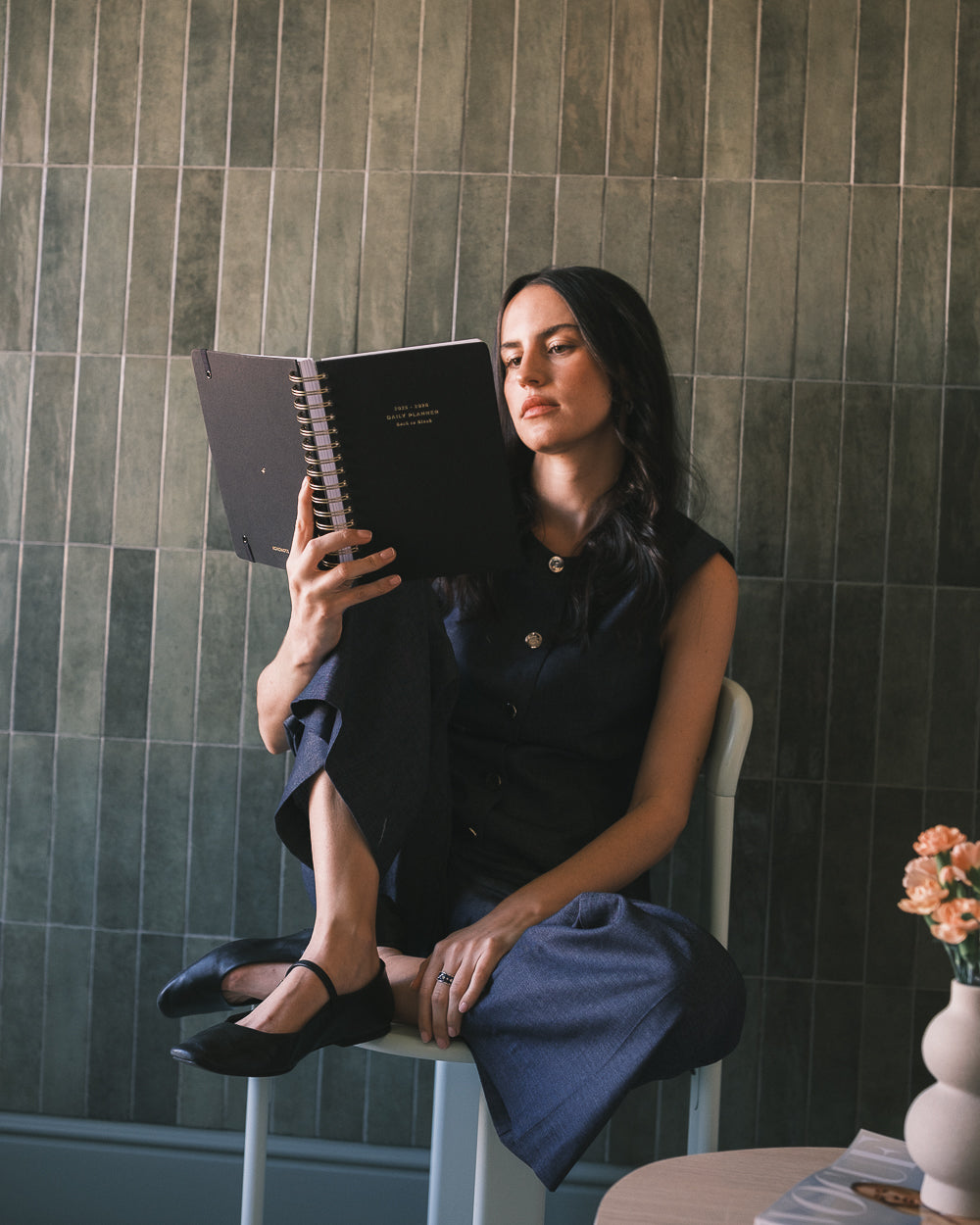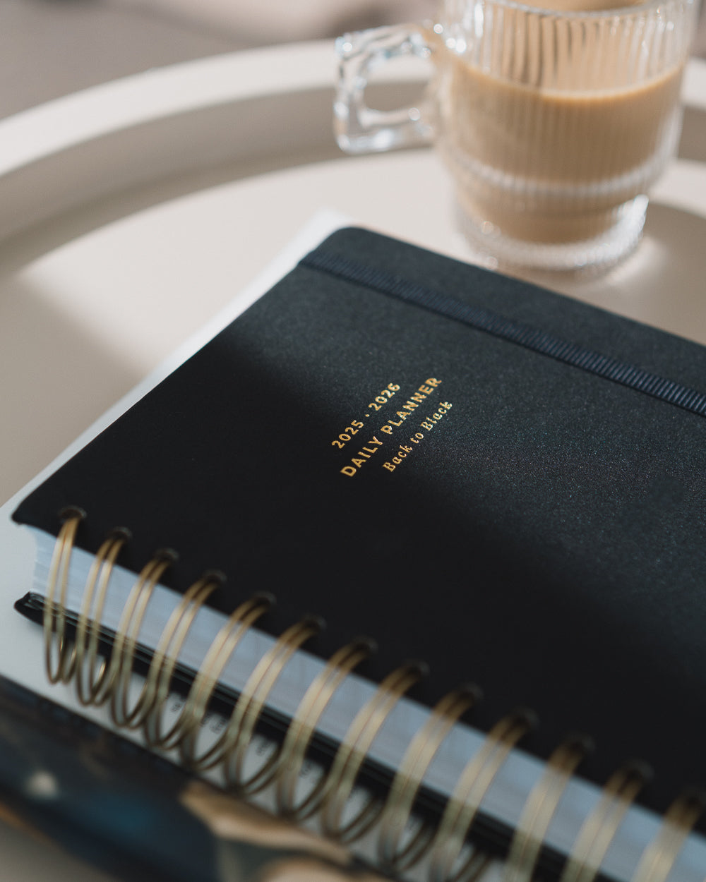 Our best-selling Back to Black planner is back! This fabric total black daily planner is the ultimate minimalist must-have to set trends and show off your routine.