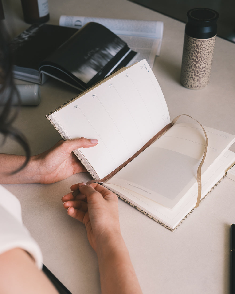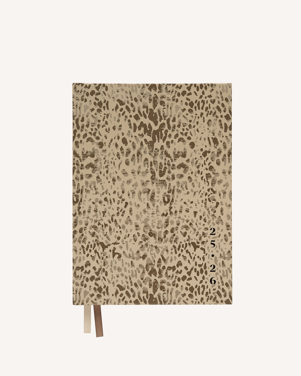 Weekly planner in olive brown with animal print; compact and full of attitude to own your deadlines in style.