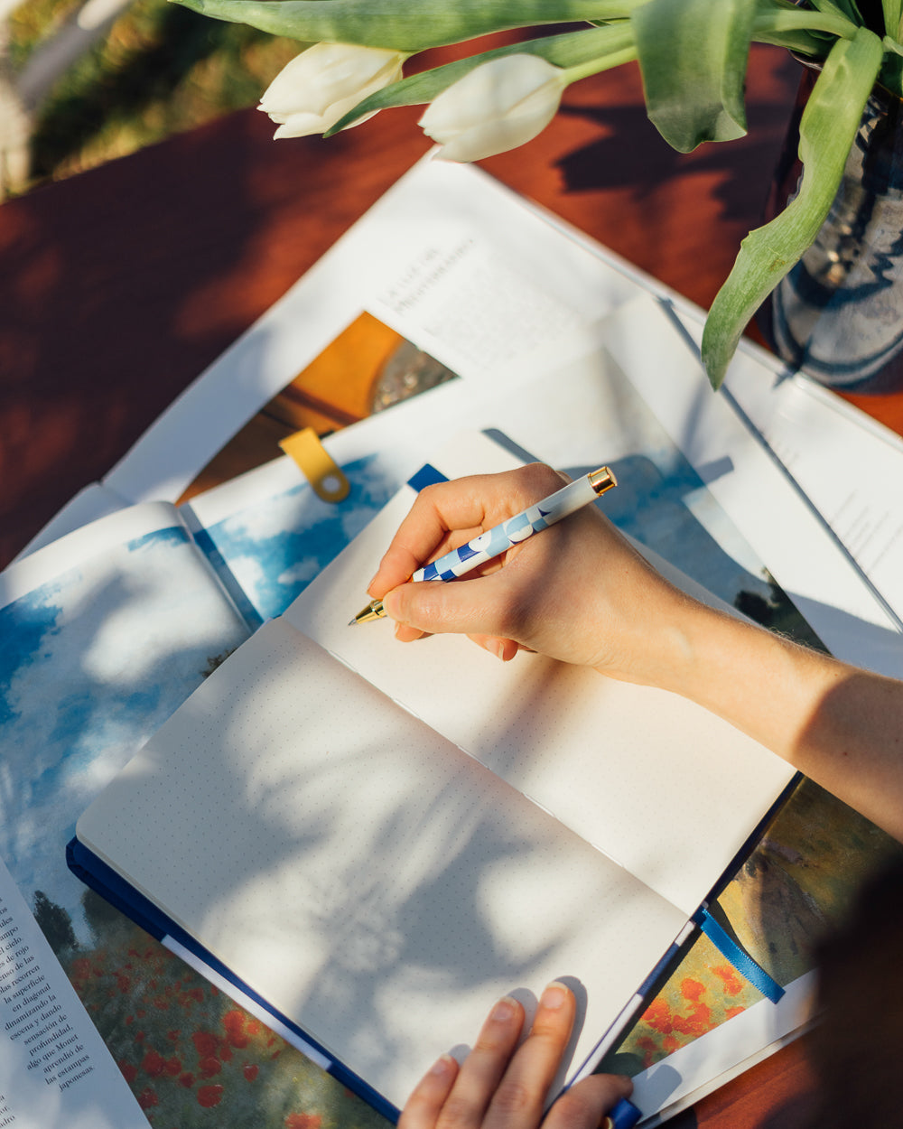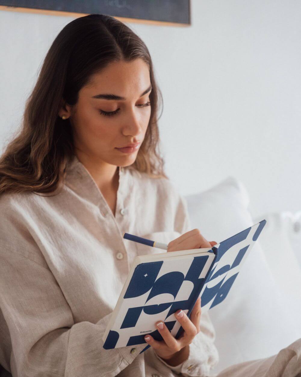 Fabric finished notebook from the Akalia collection, designed to capture the essence of the Mediterranean. Its size is like an A5 and its interior, with dotted pages, is ideal to let your ideas flow.