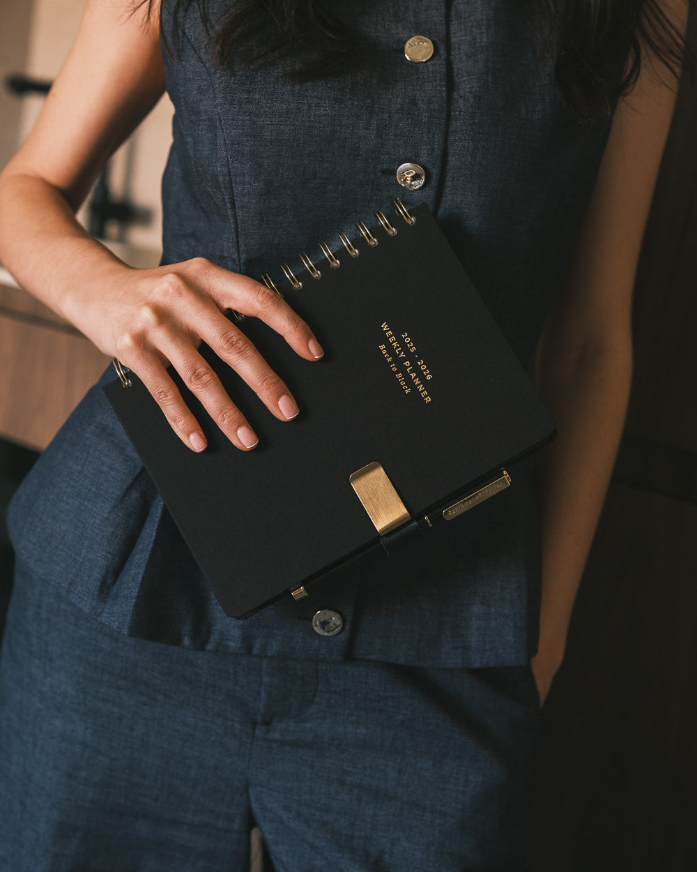 Black metal clip with gold finish from the Basic Studio collection.