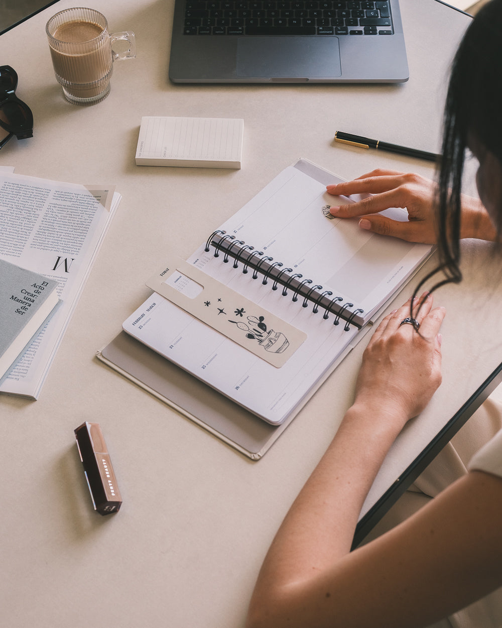 Contenido exclusivo: Vision board, planificador de gastos, horarios, plazos de entrega, prioridades mensuales con seguimiento de hábitos, planificador mensual y 8 hojas de notas