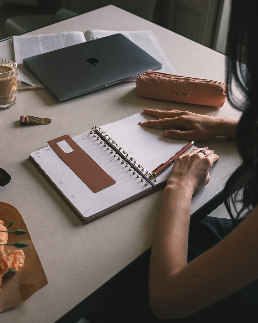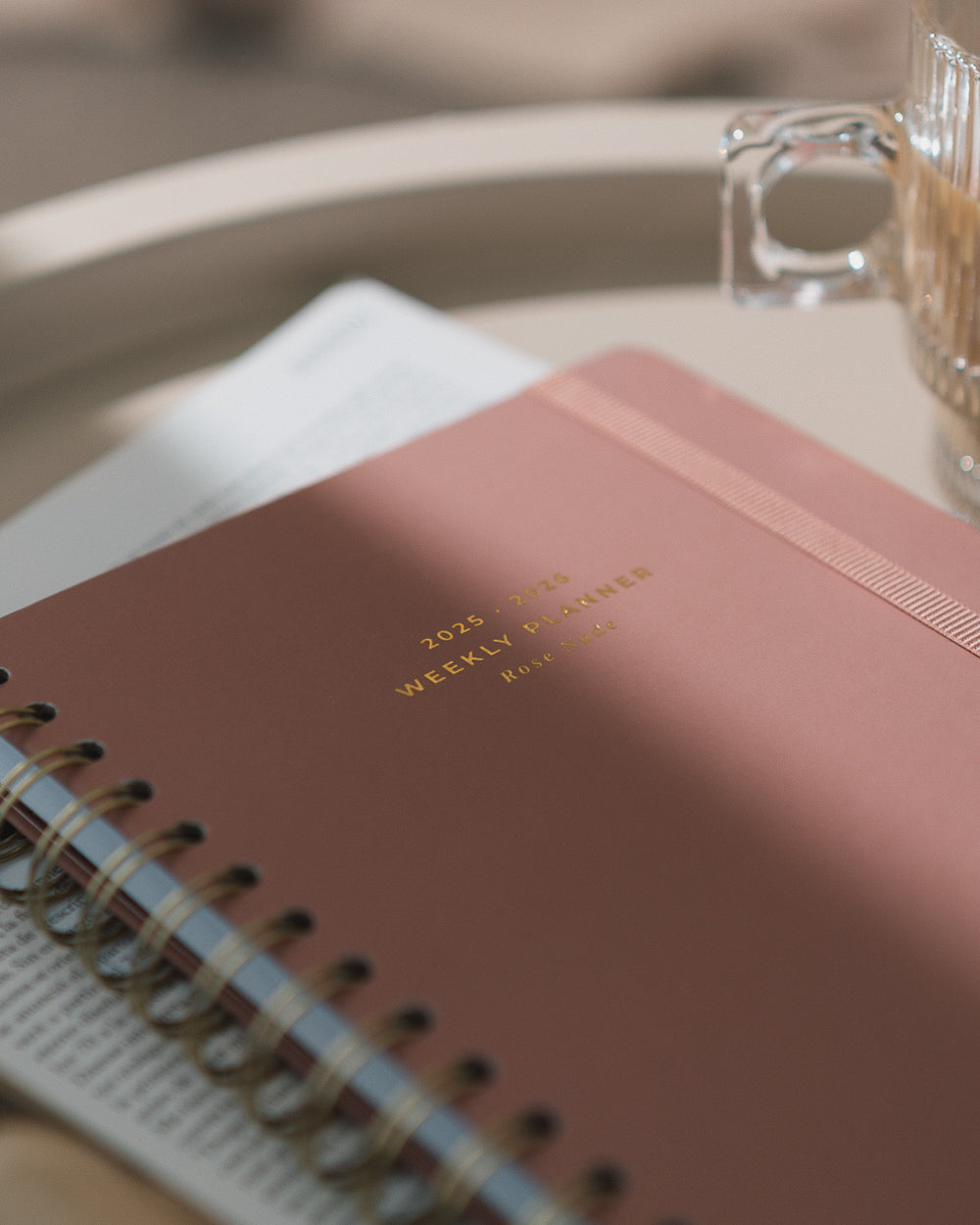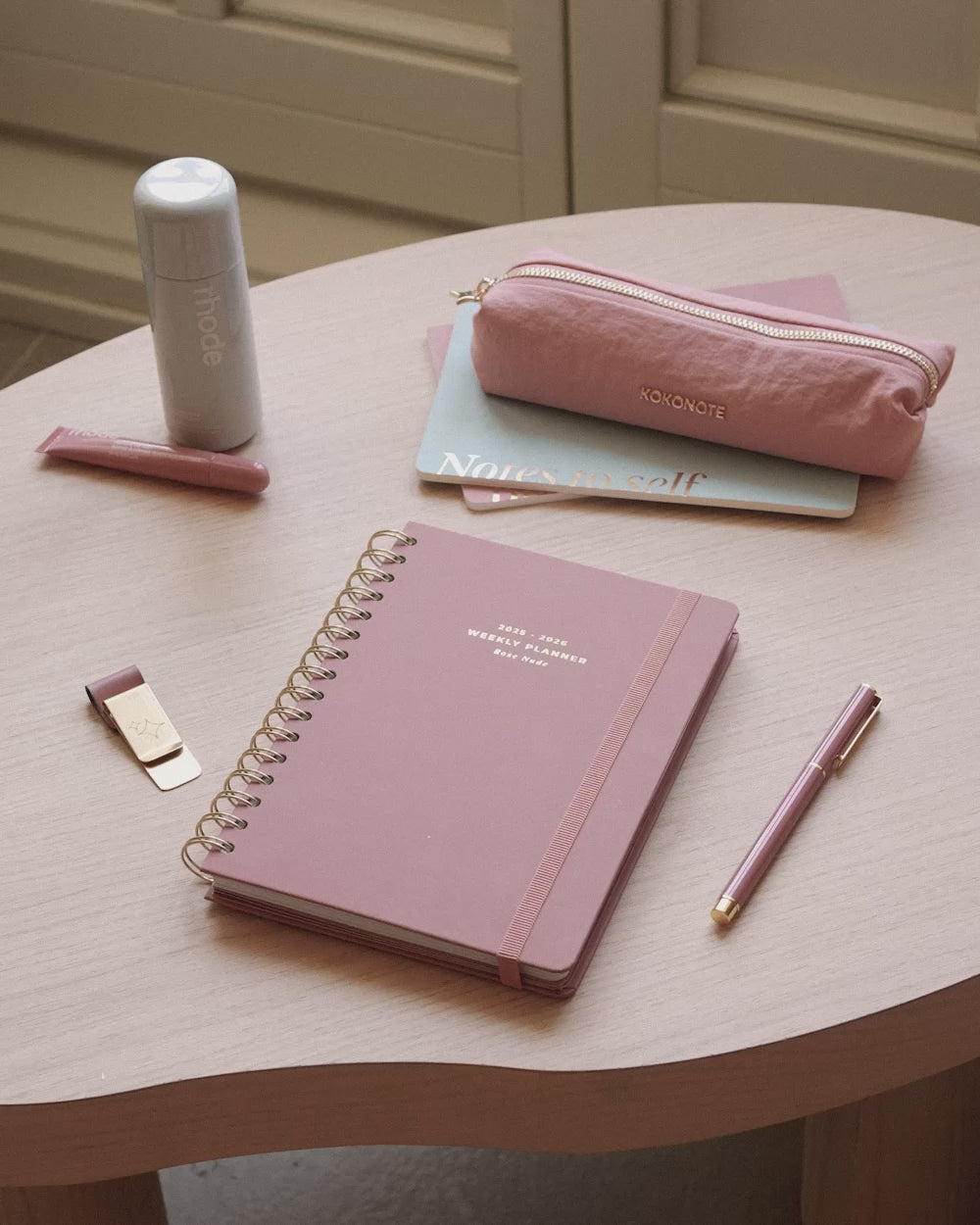 Agenda semanal rosa empolvado, minimalista y glam para que tus planes deslumbren.